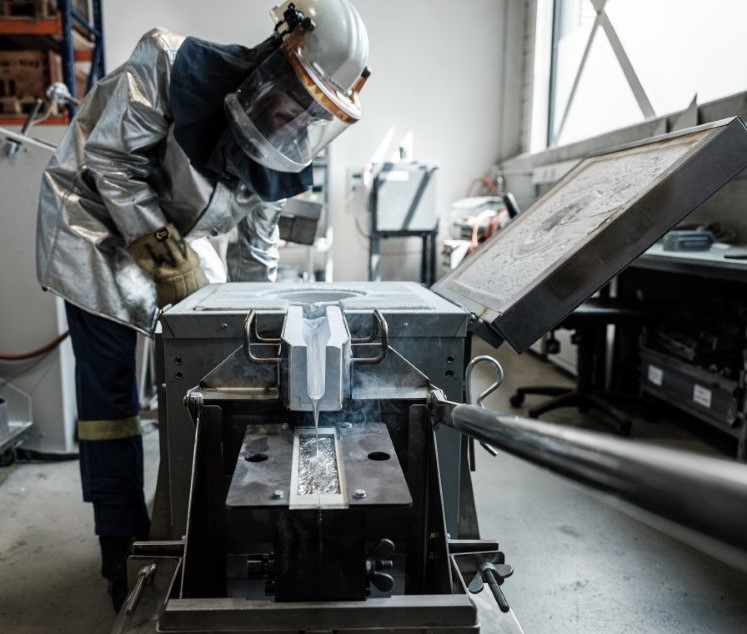 Die Forscherinnen und Forscher des Forschungs- und Entwicklungszentrums in Siders entwickeln innovative Produkte, um den ökologischen Einfluss zu verringern und den Weg für eine kohlenstoffarme Mobilität zu ebnen. Das Umschmelzen und Giessen von Rohlingen im Laborbereich ist der erste Schritt für neue Legierungen auf dem Weg zur Produktion und ermöglicht grosse Flexibilität und Schnelligkeit bei der Entwicklung des Materials der Zukunft.